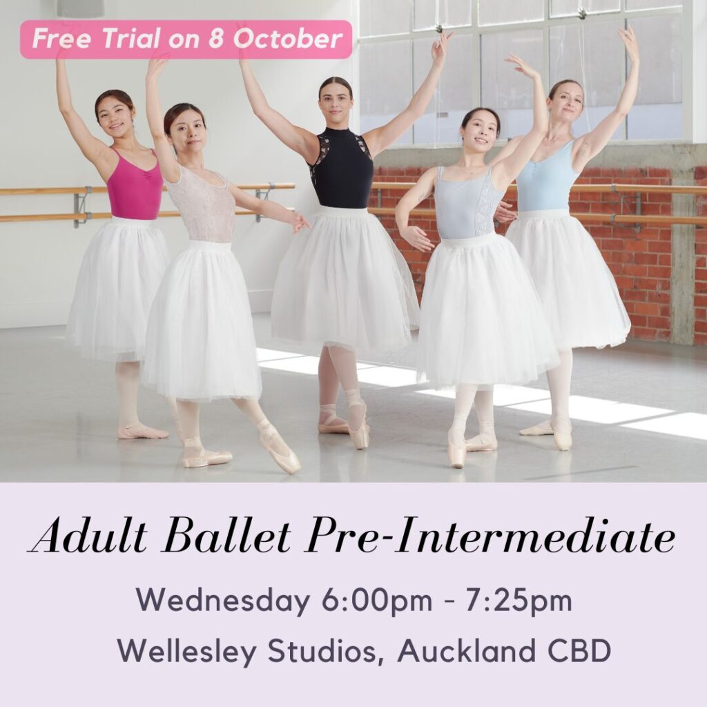 The class level is similar to the Saturday intermediate ballet + repertoire class, however, it dedicates additional time to focus on pre-intermediate level steps, allowing for a more thorough exploration of technique. This specific approach distinguishes it from the broader range covered in the Saturday class. The level is equivalent to RAD Grade 6 to Intermediate Foundation / Cecchetti Grade 5 to 6.